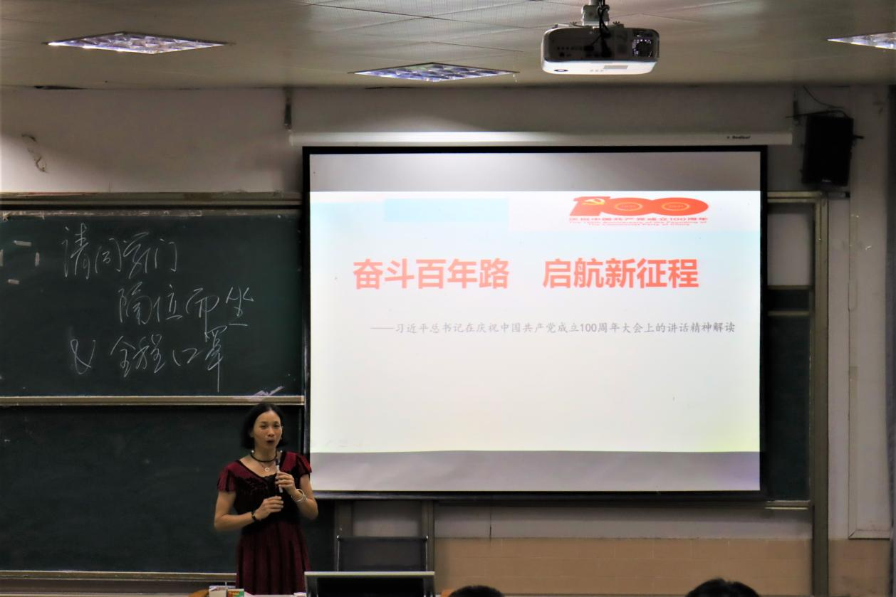 为深入学习贯彻习近平总书记在庆祝中国共产党成立100周年大会上的重要讲话精神,2021年9月10日,太阳城集团直属党支部书记宋美娴围绕主题“奋斗百年路 启航新征程”,为20级员工上了新学期第一堂思政课。
