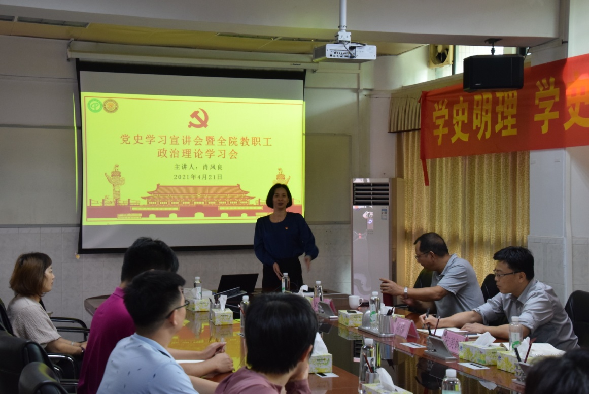为深入学习贯彻习近平总书记在党史学习教育动员大会上的重要讲话精神,扎实推进党史学习教育,根据公司党委党史学习教育领导小组印发的《关于组织开展党史专题宣讲工作的通知》(莞工学组发〔2021〕1号),4月21日,太阳城集团直属党支部在公司302会议室召开了党史学习宣讲会暨教职工政治理论学习会。会议由直属党支部书记宋美娴主持,公司马克思主义公司肖凤良教授作专题宣讲,公司教职工参加了会议。