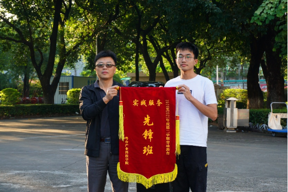 随后,陈伟为2020级经济与金融1班颁发“区域管理先锋班”锦旗,对其在上学年劳动教育课程中的优异表现给予鼓励。