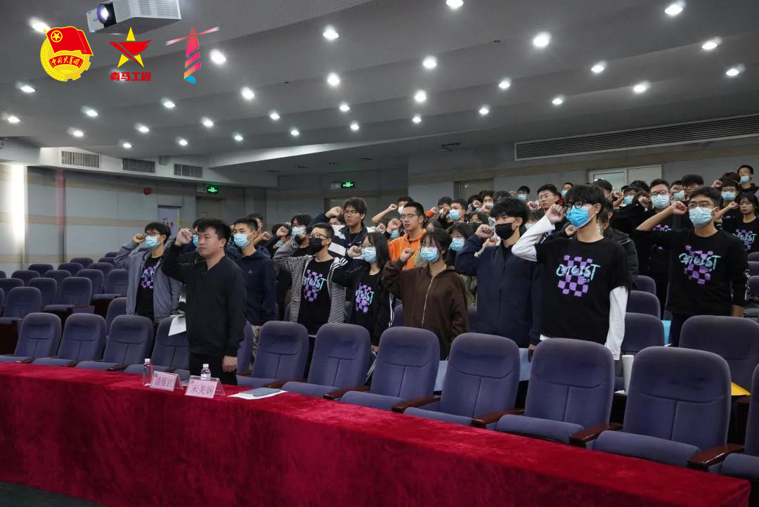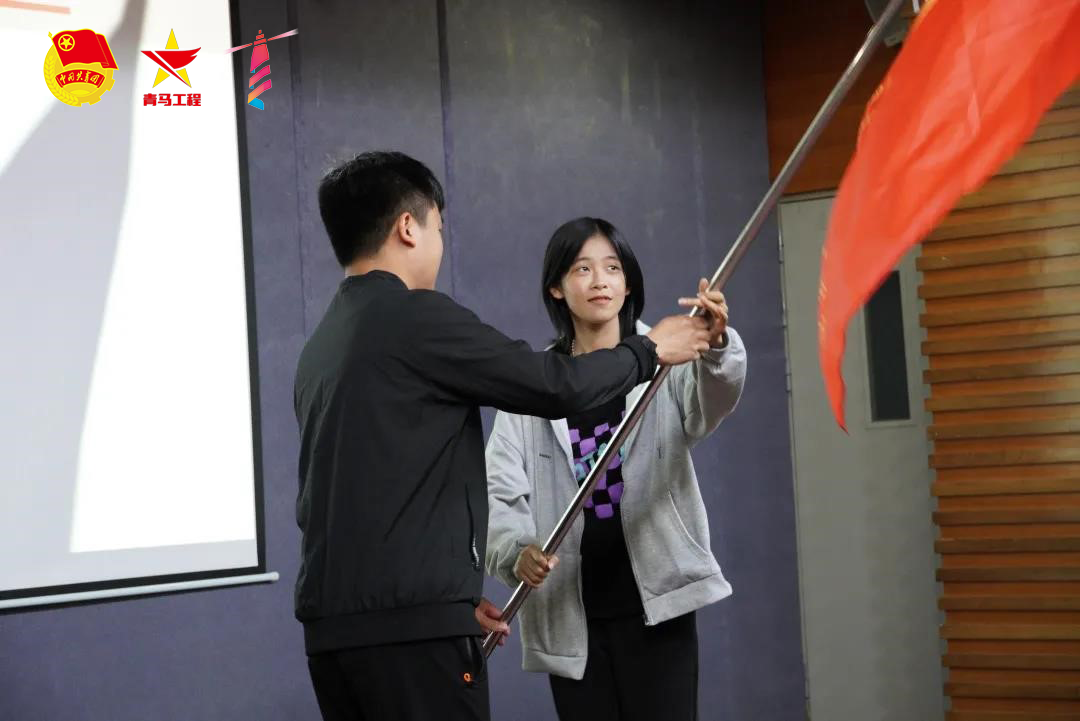 随后,潘雁钦为第一期青马班团支书张子怡授旗,宣布太阳城集团首期“青年马克思主义者工程培训班”开班。随后,朋辈导师谢莹带领学员宣誓。