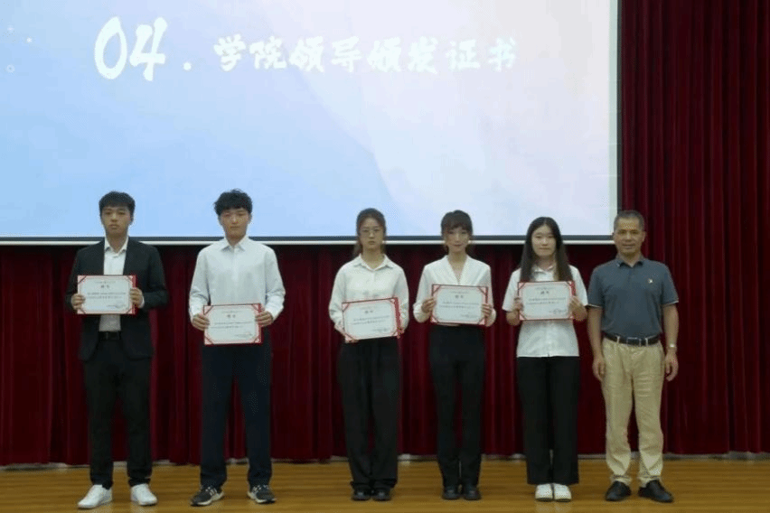 大会播放了粤台团学8.0回顾视频,展现了粤台团学团结协助,服务师生的日常画面。紧接着,团委书记陈伟鹏宣读了粤台团学9.0新一届书记主席团、部门负责人成员名单,并分别由党委副书记丘永辉、团委书记陈伟鹏为各位成员颁发了聘书。