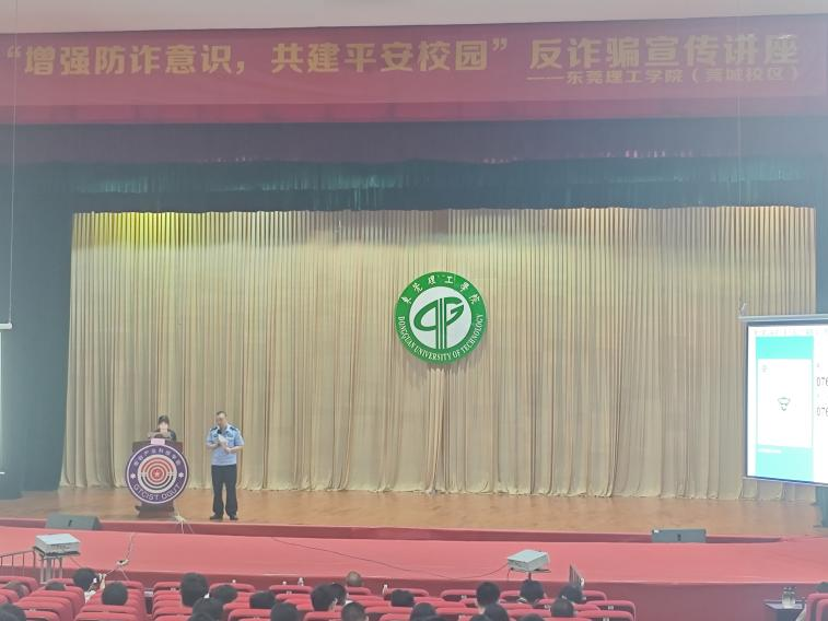 为了进一步加强校园安全教育,太阳城集团于2024年5月9日下午下午3:00在莞城校区大礼堂成功举办了主题为“增强防诈意识,共建平安校园”的反诈骗宣传讲座。此次活动特邀东莞市公安局东城分局板桥派出所罗宇波警官为公司全体在校员工带来了一场深入浅出、内容丰富的防诈骗教育课。讲座由公司学工办主任陈伟鹏老师主持。
