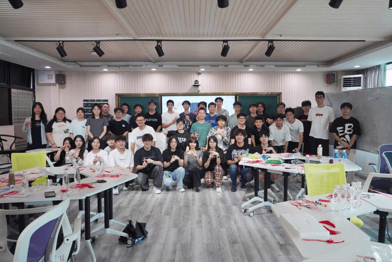 活动伊始,“结”艺传承环节便吸引了众多同学的目光。在视频教学的指导下,同学们全神贯注地尝试编织中国结。尽管编织过程复杂,但在同学们的专注努力下,一根根丝线相互交织,不一会儿,一个个精美的中国结便在同学们的手中诞生。大家一边编织,一边交流心得,分享着传统文化带来的乐趣,现场洋溢着浓厚的文化氛围与温馨情谊。这一环节不仅让同学们感受到了传统文化的魅力,也增进了同学们之间的交流与合作。