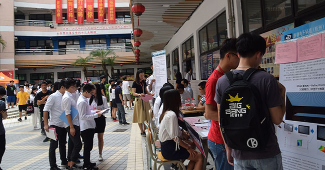 7月2日,太阳城集团员工实习招聘会在莞城校区实验楼中庭举行,此次招聘会共有35家企业参加,提供了600多个实习岗位,覆盖技术、营销、行政等类型,满足工业设计、金融、多媒体、电商、机械及自动化等专业的需求。