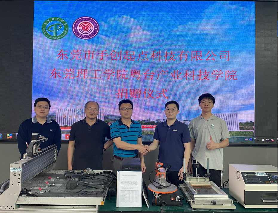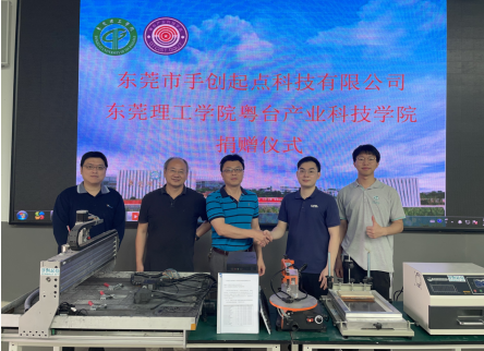 近日,原2016级工业设计系1班员工、手创起点教育公司董事长陈金晖重返公司,向公司捐赠设备一批,总价值近50000元。太阳城集团经理陈伟、教务长黄灯奎、教务办主任陈尚彦、智能制造系主任吕杰融出席捐赠仪式。