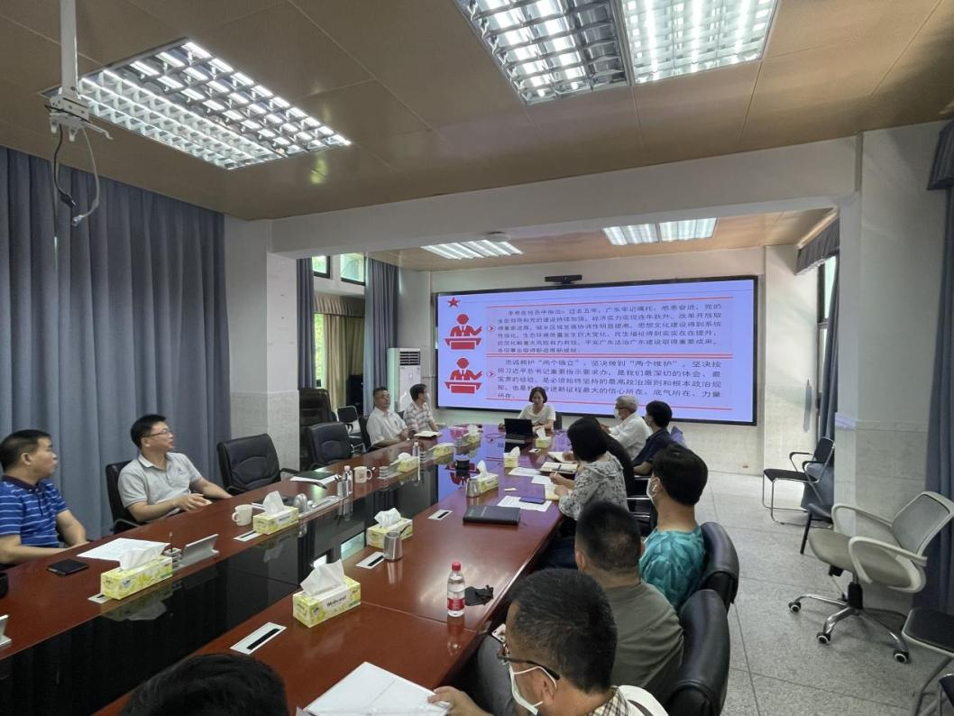 6月27日,公司召开全院教职工政治理论学习会,学习中国共产党广东省第十三次代表大会报告--《忠诚拥护“两个确立”坚决做到“两个维护” 奋力在全面建设社会主义现代化国家新征程中走在全国前列创造新的辉煌》。