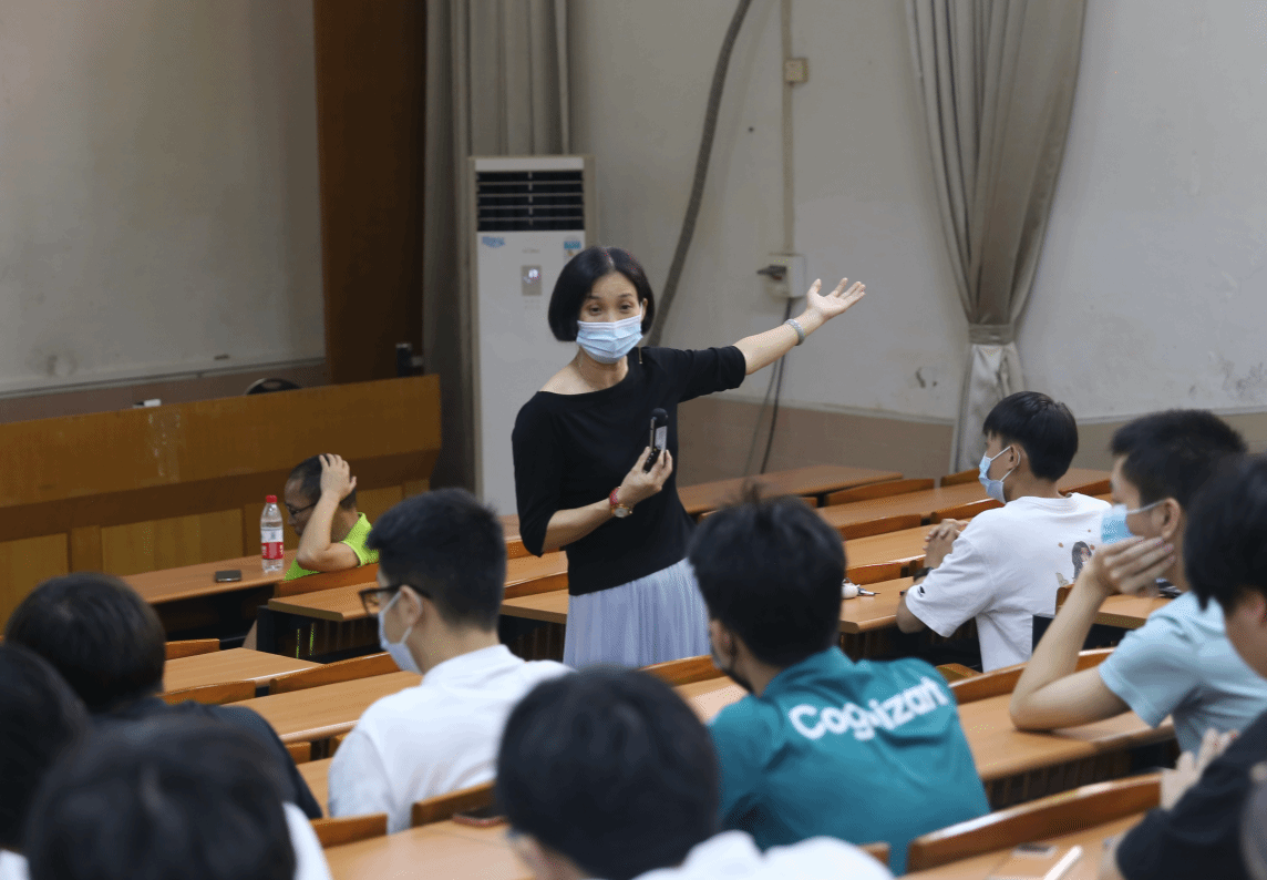 9月28日上午,粤台产业科技公司党委书记宋美娴在莞城校区五号教学楼一号教室给20级智能制造1、2班和20级经济与金融1、2班共105名员工上《形势与政策》思政课。