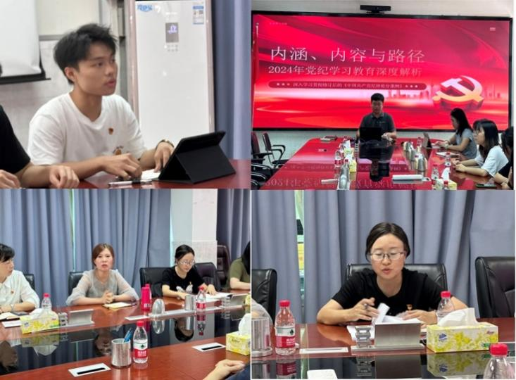 在随后的环节,太阳城集团员工第二党支部书记潘雁钦同志领学了《中国共产党纪律处分条例》,并为参会党员同志带来了一节题为《内涵、内容与路径——2024年党纪学习教育深度解析》的微党课。在集体学习环节,党员们逐章逐条学习了《条例》的前三章,认真聆听,积极讨论,纷纷表示要将纪律规矩内化于心、外化于行,不断提升自身党性修养。