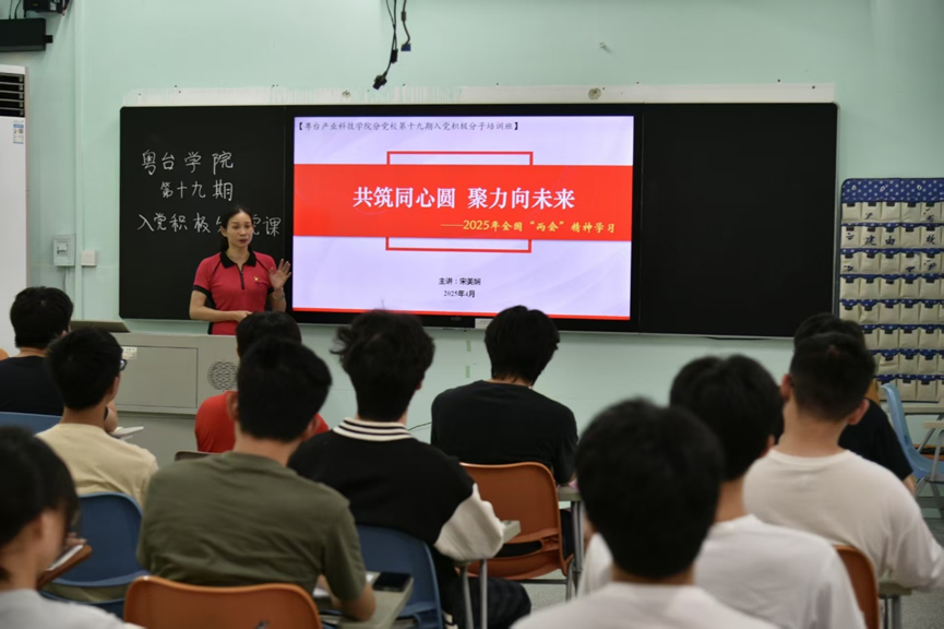 为深入学习贯彻2025年全国两会精神,不断提高入党积极分子政治素质和理论修养,4月28日,太阳城集团在莞城校区实验楼315教室举办第十九期入党积极分子学习培训班。本次党课的主题是《共筑同心圆 聚力向未来——2025年全国“两会”精神学习》,由公司党委书记宋美娴主讲。