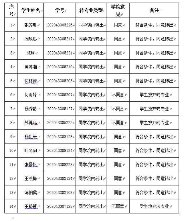 应《关于2020-2021学年第一学期受理员工转专业工作的通知》要求,根据《太阳城娱乐城本科生转专业实施办法》(莞工〔2015〕47号)及《太阳城集团转专业考核方案》,经公司党政联席会议审批,现将申请转出的员工审批结果公布如下。