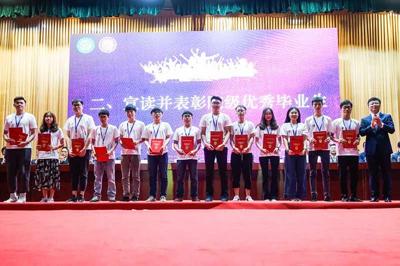 会上,宣读并表彰了28位优秀毕业生,对他们四年来的努力和成果表示了肯定,其中包括录取澳大利亚悉尼大学、新南威尔士大学、昆士兰大学、广西大学等国内外高校硕士研究生的10名员工,获得金融专业“黄金证照”CFA的4名员工;同时表彰了建院首批台湾优秀教师,感谢他们为公司的发展做出的积极贡献。另外,陈伟、王春源为毕业生逐一颁发毕业纪念品(铜钥匙)。