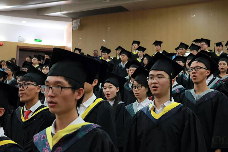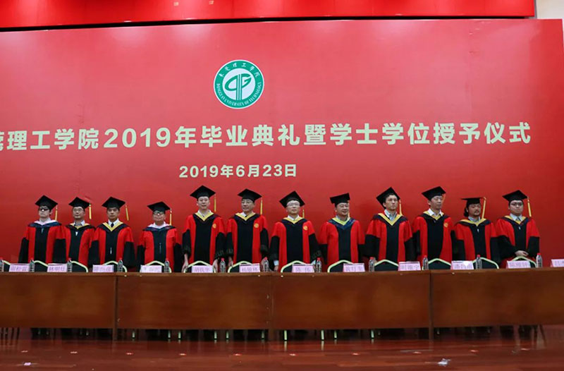 接着,陈伟、王春源为毕业生逐一扶正流苏,颁发学士学位证书,并合影留念。拨穗礼象征着毕业学子已学有所成,可以展翅高飞,追求梦想。从右到左简单的拨穗动作,饱含了对毕业生们美好未来的祝愿和希冀。毕业典礼是母校给即将离校的学子们上的最后一堂课,也凝聚了每位毕业生珍贵的大学时光和青春记忆。
