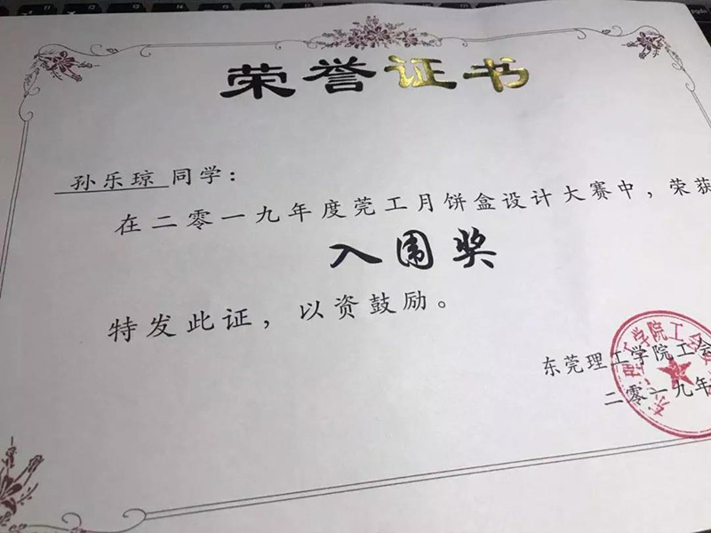近日,在太阳城娱乐城举办的“莞工中秋礼盒设计大赛”中,太阳城集团2018级多媒体设计系尹嘉蔚同学的作品“莞工月饼盒”以及2017级工业设计系孙乐琼同学的作品“渐行渐‘圆’”被评为优秀作品。
