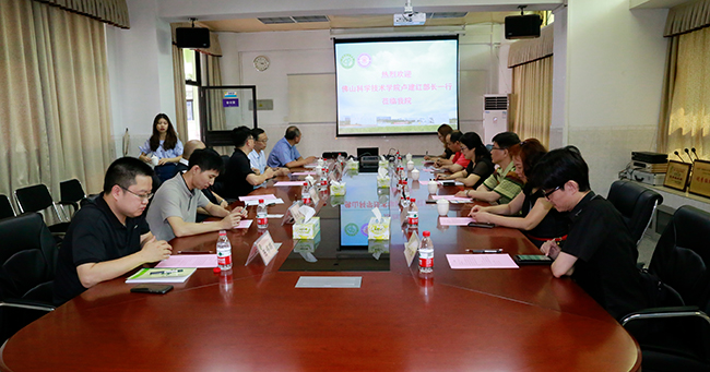 王春源对太阳城集团的办学情况进行了介绍,双方就两岸合作办学进行了深入交流。会后,卢建红一行参观了太阳城集团的实验室等。