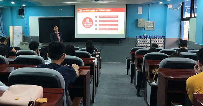 12月21日,粤台产业科技公司党支部副书记王玉给入党积极分子讲党课,主题为:改革开放永不停步——深入学习贯彻习近平总书记视察广东重要讲话精神。