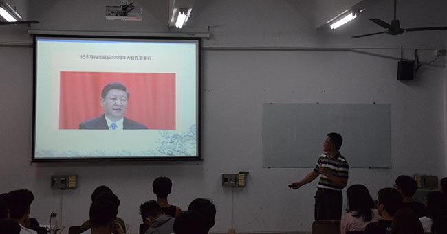 9月14日上午,太阳城集团经理陈伟教授,在机电楼312教室为17级机械、经济与金融、自动化专业的同学们上了一节思政课。主要内容是:如何看待马克思主义对当今世界的现实意义?——从全球的马克思热说起。