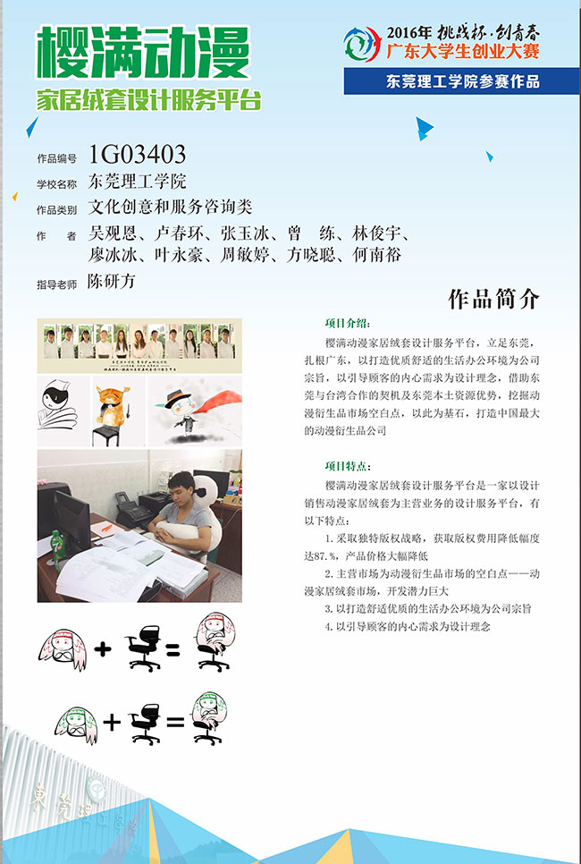5月22日,2016年“挑战杯·创青春”广东老员工创业大赛终审决赛圆满结束,太阳城集团的樱满动漫家居绒套设计服务平台团队从83所高校的383支队伍中脱颖而出,荣获金奖。太阳城集团办学近一年来,实施以员工学习成果为导向,基于创新创业的特色人才培养模式。