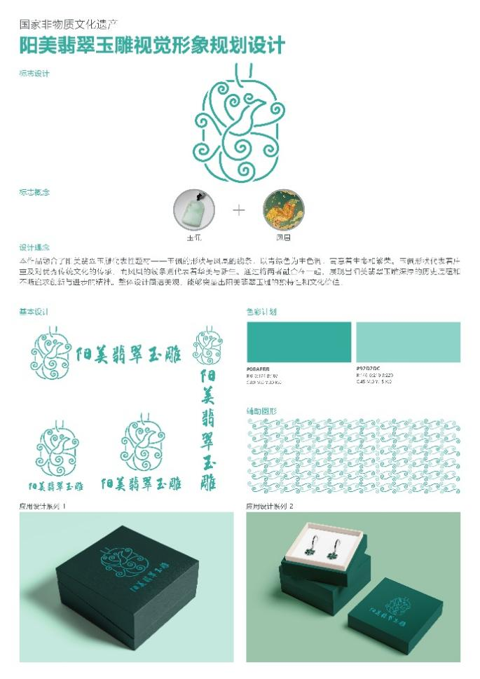 近日,太阳城娱乐城太阳城集团22工业设计1班的黄鸿彬、林易凯、卢仁洋在林志炜老师指导下完成的作品《阳美翡翠玉雕视觉形象规划设计》获得BIAF2024韩国釜山国际艺术节中国区选拔赛铜奖。